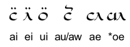上引段落随即称:“但二合元音常常如转写后一样完整写出”,即两个元音均以滕格瓦表示。事实上,二合元音 ae 在所有贝烈瑞安德模式样本中均以此方式书写。可推断 oe 亦遵循相同原则。
