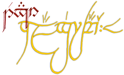 这种优美的“流畅字体”见于至尊戒铭文。该风格几乎是正书体的草书变体,略似意大利 Cancellaresca 体。此处以书法钢笔书写,但亦可用蘸水笔书写——对于 tehtar 而言,蘸水笔更佳。若使用书法钢笔,笔尖角度应为45°或稍陡。