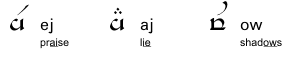 当拉丁拼写中出现两个不同的相邻元音时,可转写为连续两个 tehtar。但也可用图 1所列的适当滕格瓦表示第二个元音。