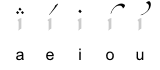 在古典模式中,元音由 tehtar(更具体而言是 ómatehtar,即元音符号[QE])表示。图 2 展示了昆雅语元音的 tehtar。