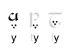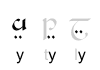 腭化辅音 (即后接辅音 y 的辅音)由腭化 tehta 表示,通常形态是加在下方的两个圆点。当 y 音单独出现,前方无辅音时,则由哑音滕格瓦 anna 与腭化 tehta 联用。