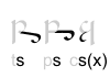 后接 s 可通过在滕格瓦的弓上附加一个向下的钩子表示,“特别是在 ts、ps、ks (x) 中,这些组合在昆雅语中很常见”[AppE]。现有昆雅语样本中未发现 s 钩的用例,但所幸其他语言文献中此类符号颇为丰富。